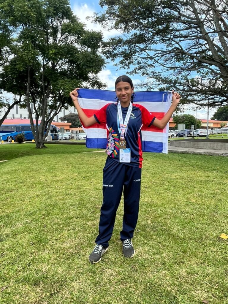 La estudiante es Ximena Schmid Araya, quien cursa el sétimo año del Liceo Emiliano Odio Madrigal, ganó oro en salto con pértiga, convirtiéndose en la campeona centroamericana en los juegos CODICADER.